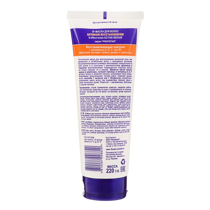 3f-Маска для волос Floralis "Активное восстановление", 220 г