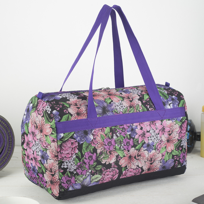 6906 П-600/Д Сумка спорт 45*23*29 отд на молнии, с косметичкой 15*8*15, черный/сирен и роз ц 39568