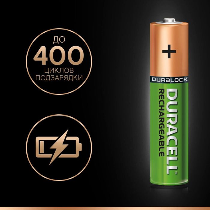 Аккумулятор Duracell, ААА, HR03-4BL, 750 mAh, блистер, 4 шт.