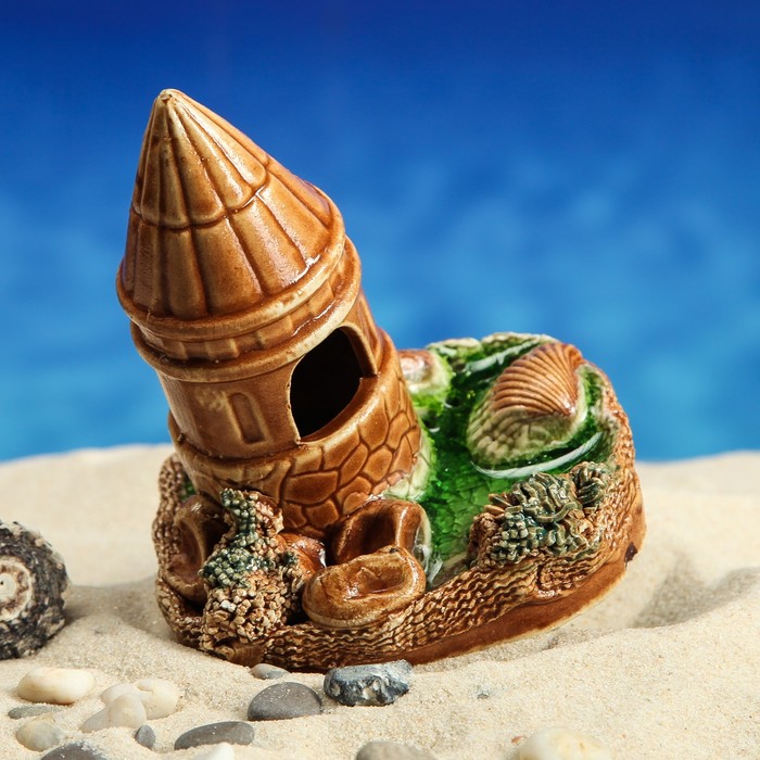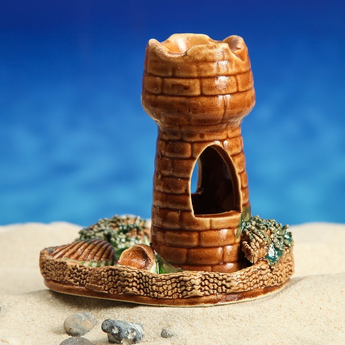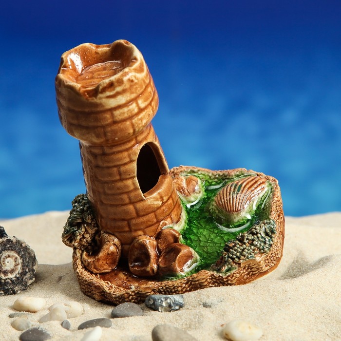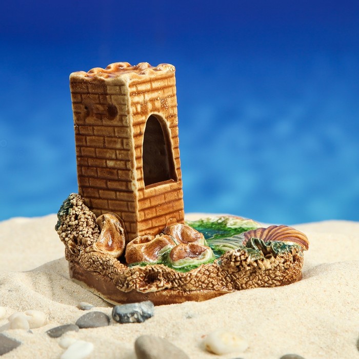 Аквадекор для аквариума "Башня на дне", микс
