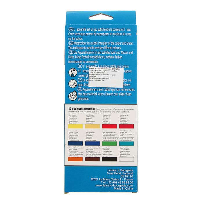 Акварель художественная набор в тубе 12цв*10 мл LeFranc&Borgeois LOUVRE LF806912
