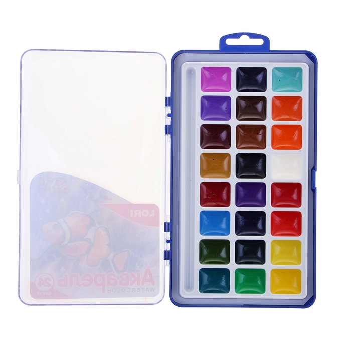 Акварель Lori, 24 цвета, в пластиковой коробке, без кисти