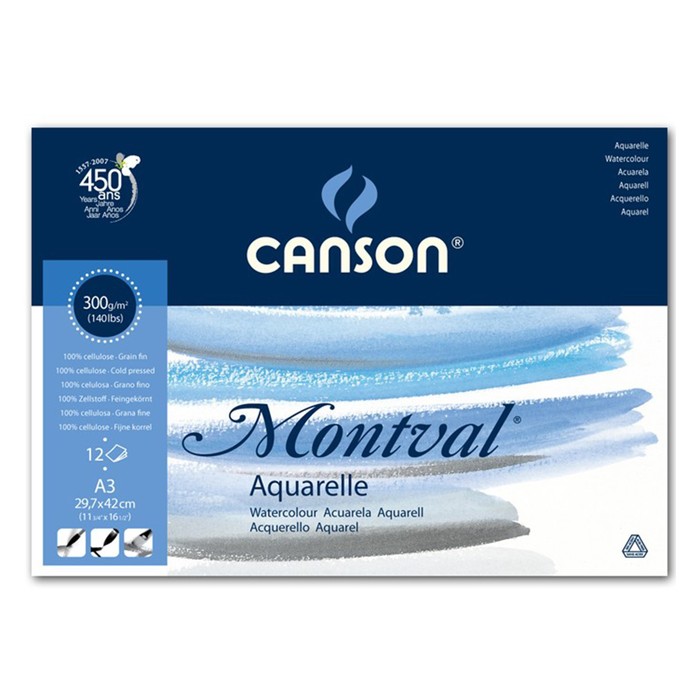 Альбом для акварели холодное прессование А3 297*420 мм Canson Montval 300 г/м 12 листов Фин склейка 200807320