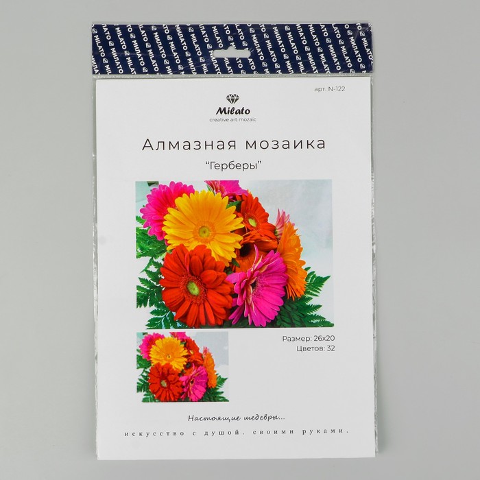 Алмазная мозаика "Герберы", 26*20 см, 32 цвета