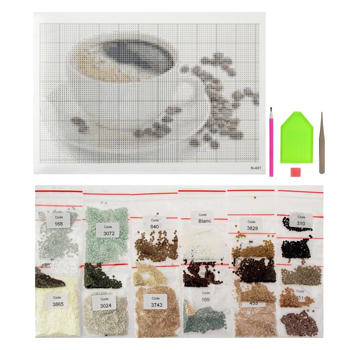 Алмазная мозаика "Кофейное настроение", 28*18 см, 23 цвета