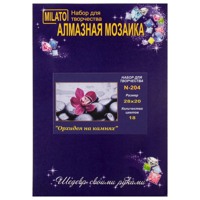 Алмазная мозаика "Орхидея на камнях", 28*20 см, 18 цветов
