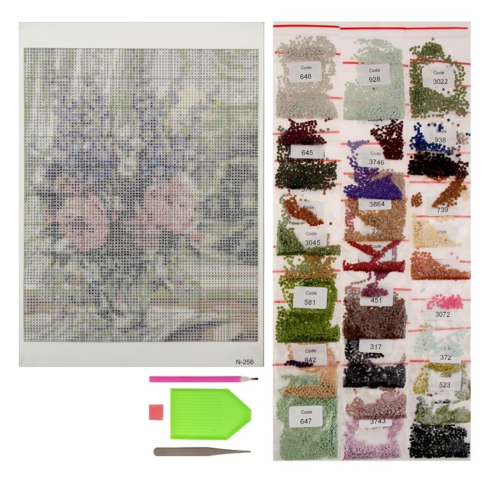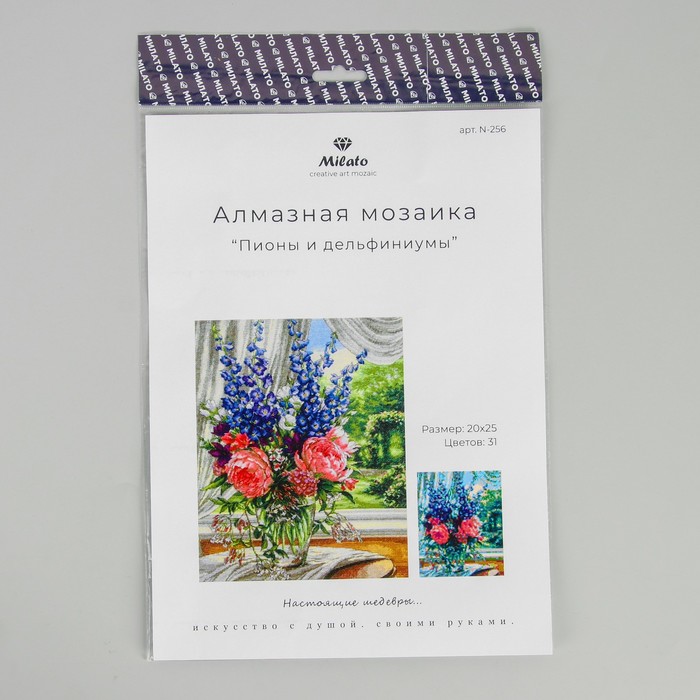 Алмазная мозаика "Пионы и дельфиниумы", 20*25 см, 31 цвет