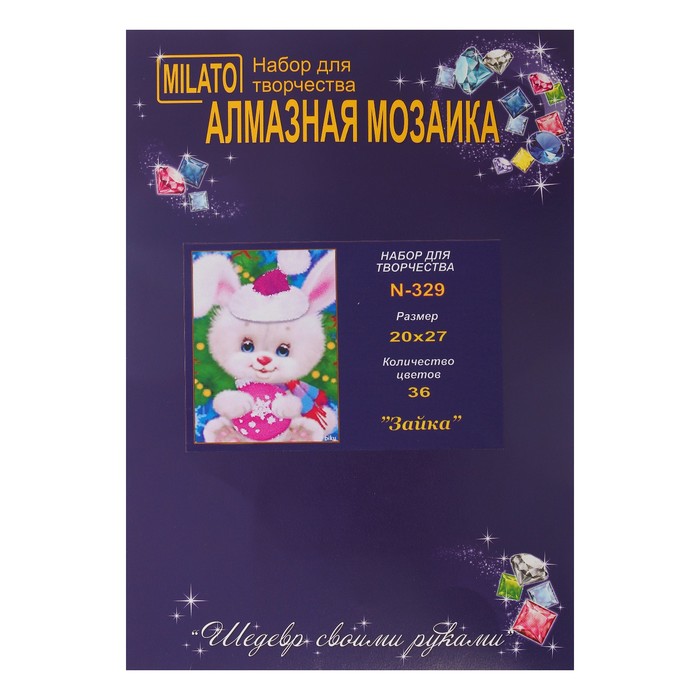 Алмазная мозаика "Зайка" 20*27 см, 36 цветов
