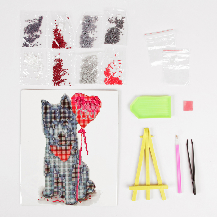 Алмазная вышивка с частичным заполнением "Хаски" с подставкой
