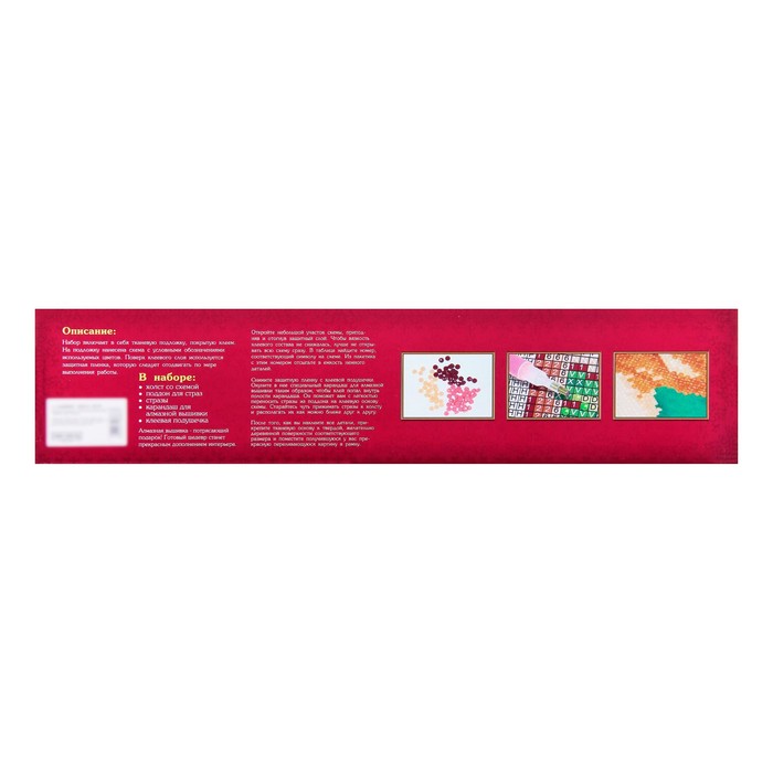 Часть картины предстоит заполнить стразами, другая часть напечатана на холсте-основе — такое изделие легче и быстрее создать. Поэтому набор подойдёт для тех, кто впервые пробует свои силы в этой технике или любит быстро добиваться результата.