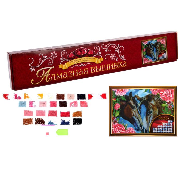 Алмазная вышивка с частичным заполнением "Лошади" 50*60 см, холст, емкость отлично подойдёт для гармоничного развития творческих способностей и организации увлекательного совместного досуга. Создавайте, экспериментируйте и украшайте дом оригинальными вещами, сделанными своими руками!