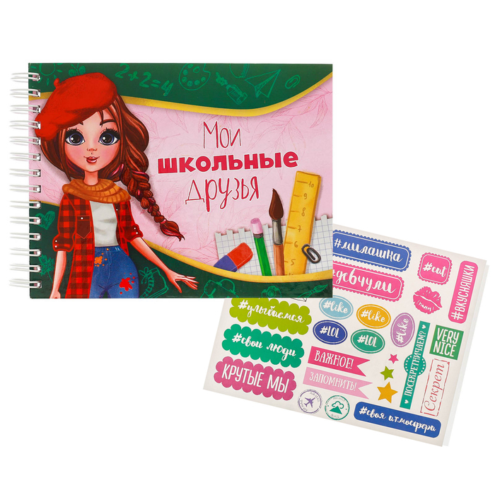Анкета для девочек на гребне с наклейками "Мои школьные друзья", А6, твёрдая обложка, 60 страниц