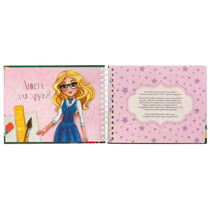 Анкета для девочек на гребне с наклейками "Мои школьные друзья", А6, твёрдая обложка, 60 страниц — отличный вариант для тех родителей, которые привыкли окружать своего малыша только лучшими и качественными вещами. За такой книжкой ваш ребёнок проведёт время с пользой и удовольствием, узнает много нового и интересного.