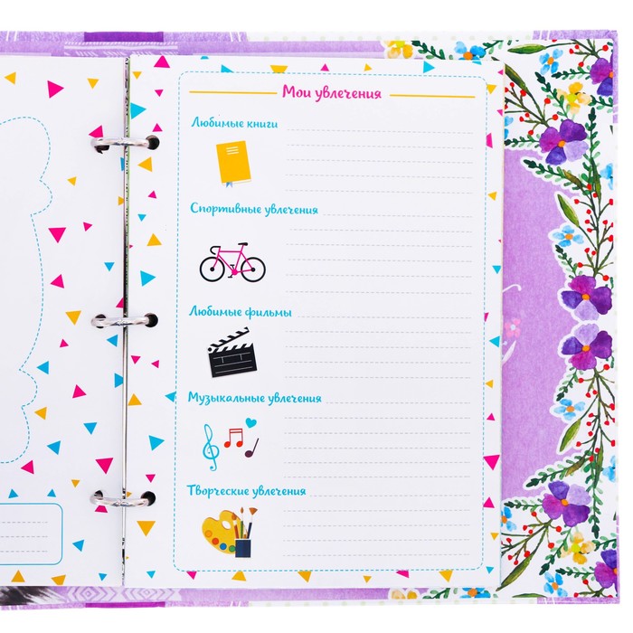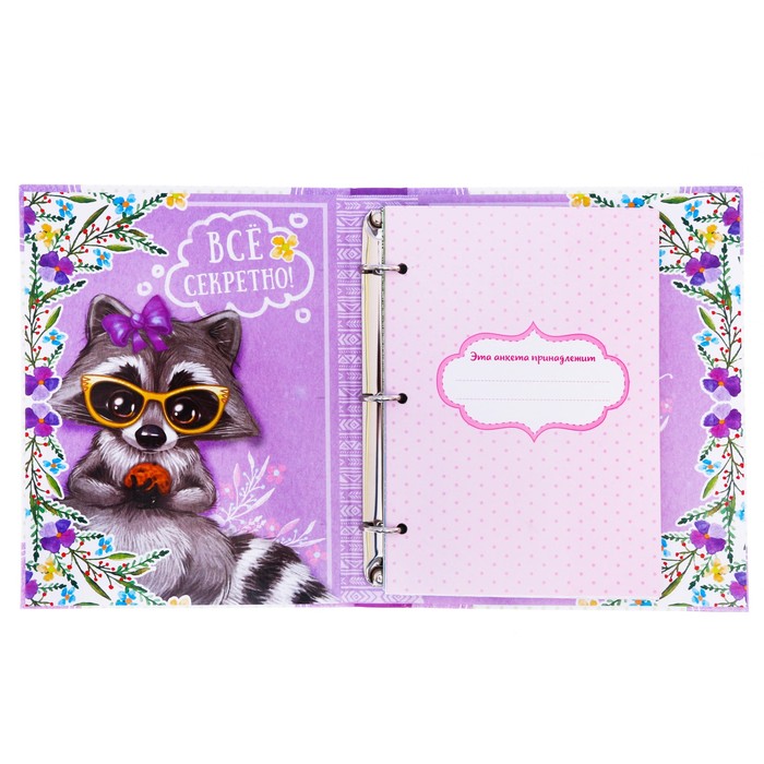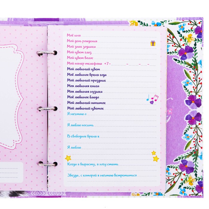 Анкета для девочек на кольцах с наклейками "Самая лучшая анкета", твёрдая обложка, 60 страниц