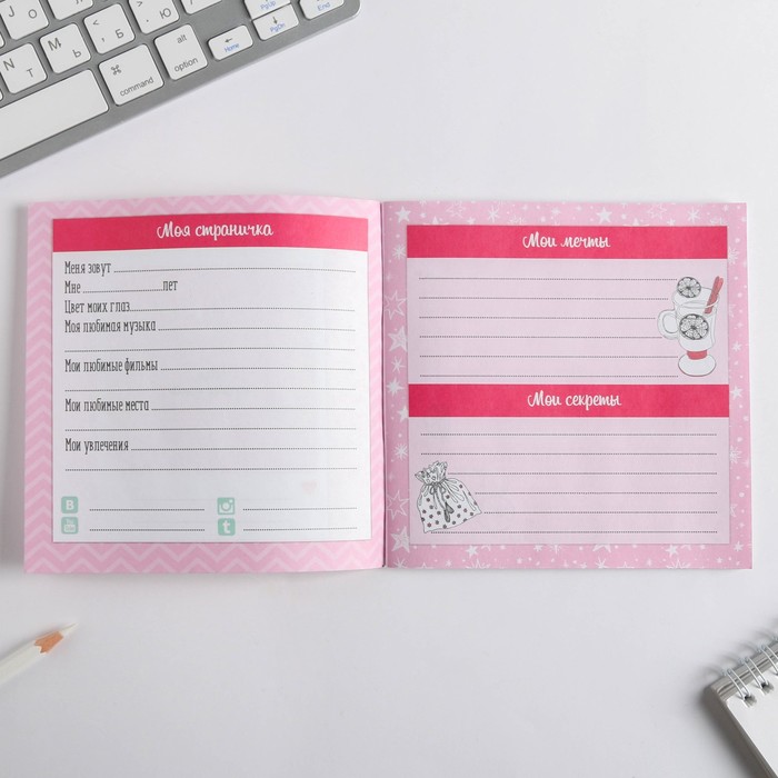 Анкета для девочек "Секреты принцессы", 14,5 х 14,5 см, 64 страницы
