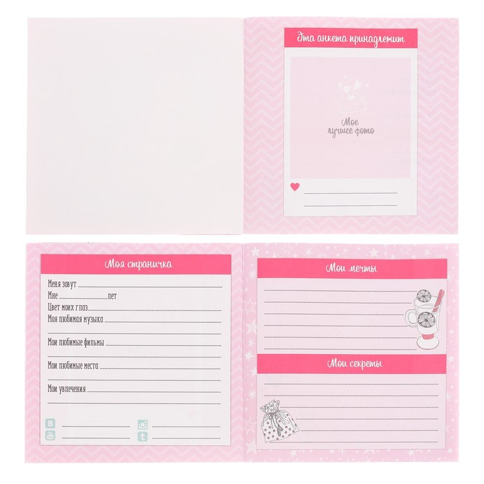 Анкета для девочек "Знаю всё о твоих друзьях", 14,5 х 14,5 см, 64 страницы