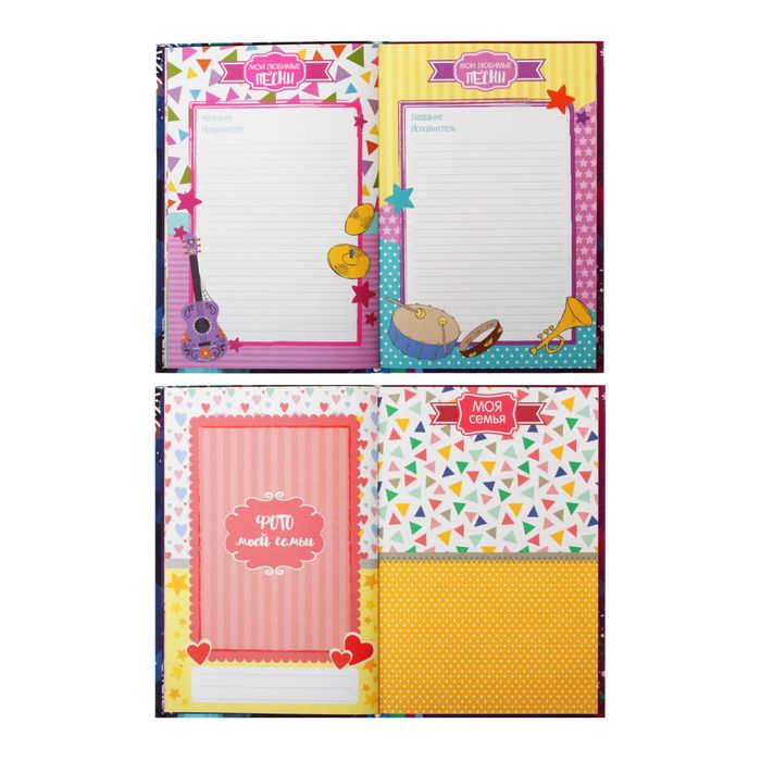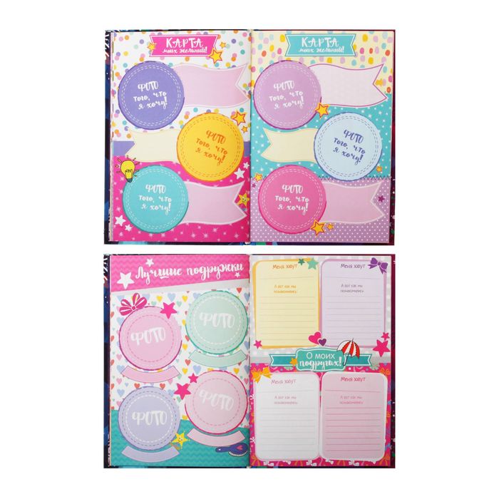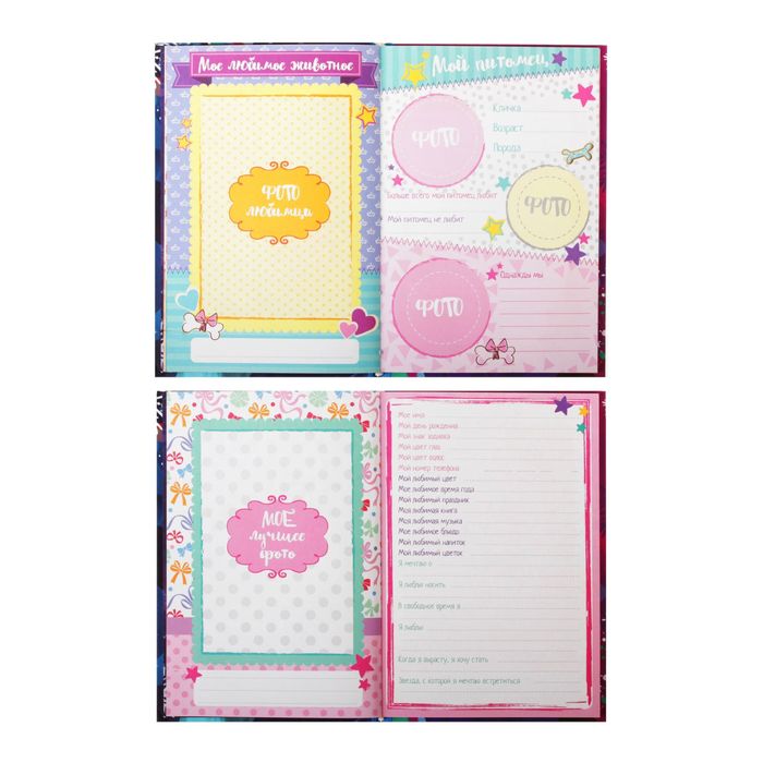 - странички для информации о владельце («Моё лучшее фото», «Анкета хозяйки», «Фото моей семьи», «Лучшие подружки», «Мои любимые животные», «Мой питомец», «Мои любимые песни», «Карта моих желаний»);