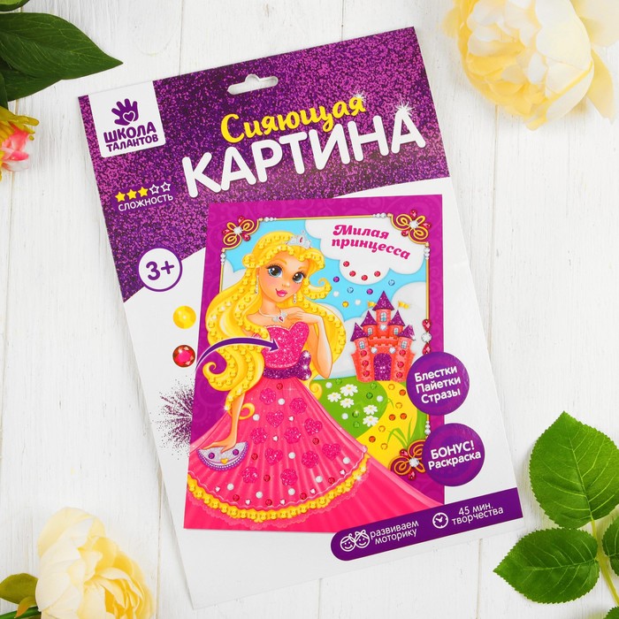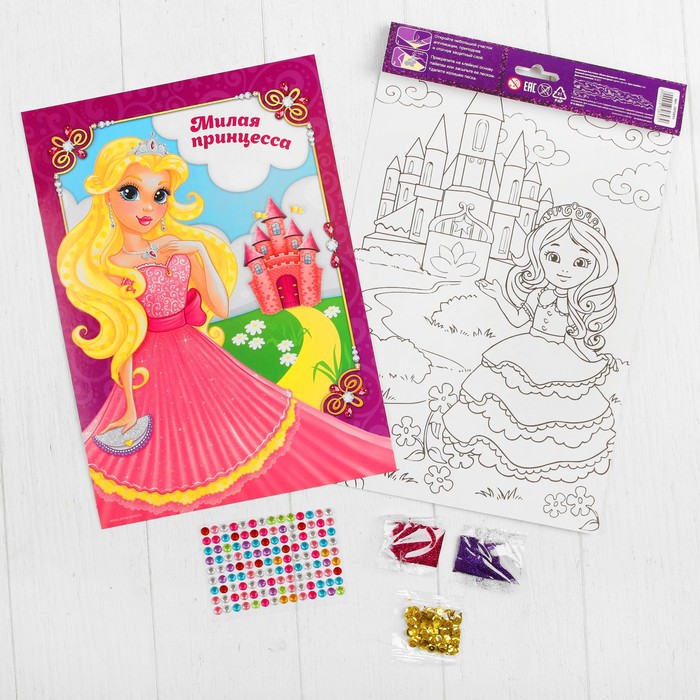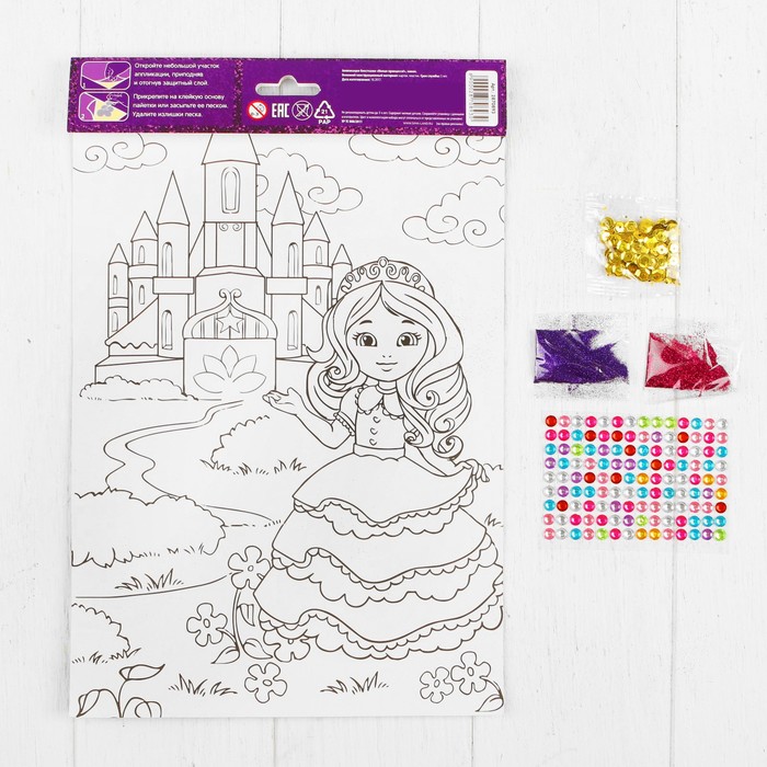 Аппликация блестками "Милая принцесса!" Замок + пайетки, стразы