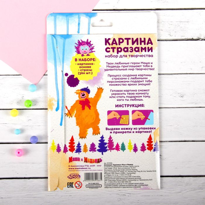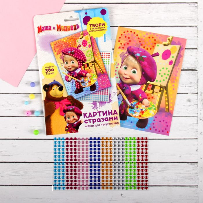 Аппликация круглыми стразами (8 цветов) "Художница", Маша и Медведь