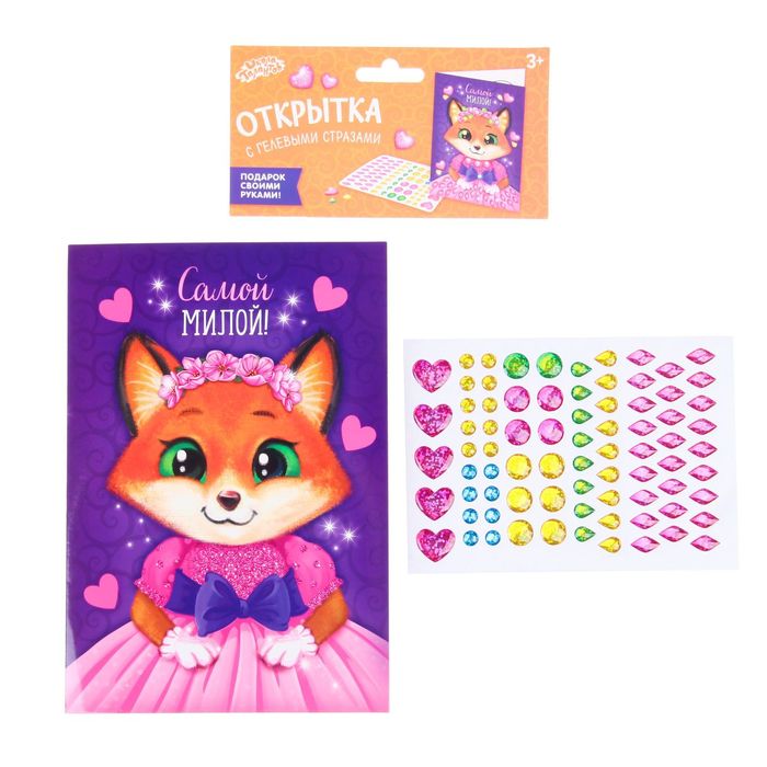 Аппликация на открытке гелевыми стразами "Самой милой!"