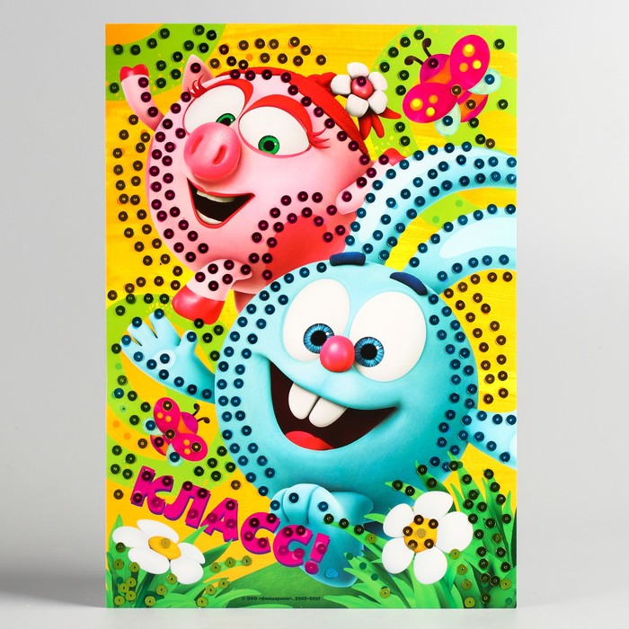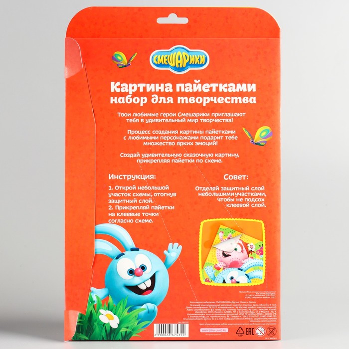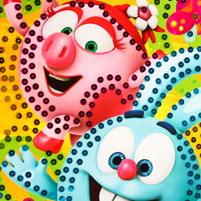 Аппликация пайетками СМЕШАРИКИ "Друзья: Нюша и Крош" + 4 цвета паейток по 7 грамм