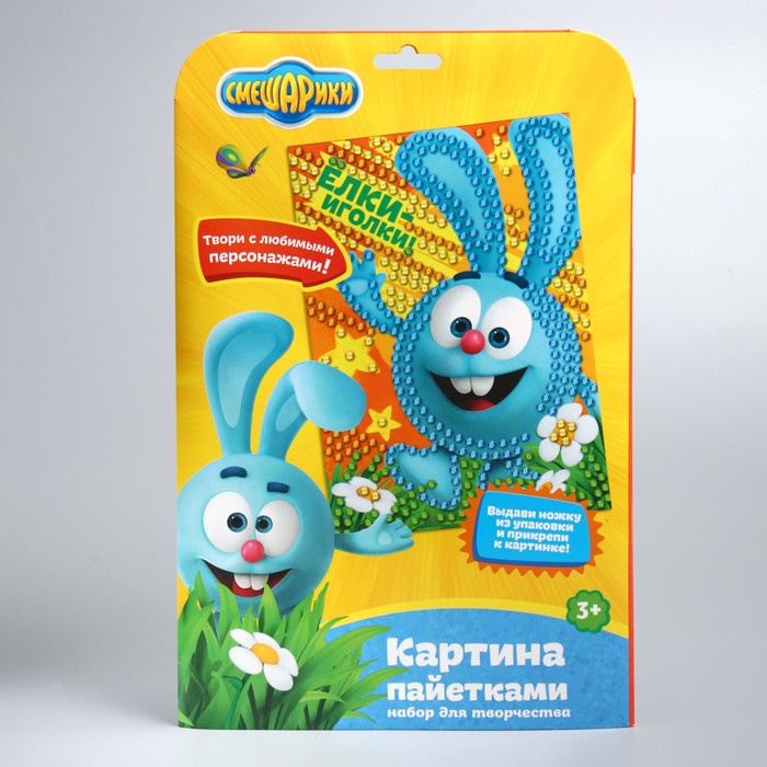 Аппликация пайетками СМЕШАРИКИ "Крош" + 4 цвета паейток по 7 грамм