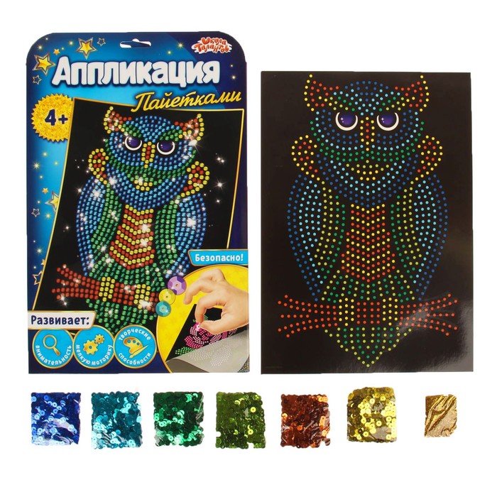 Аппликация пайетками "Сова" с клеевым слоем