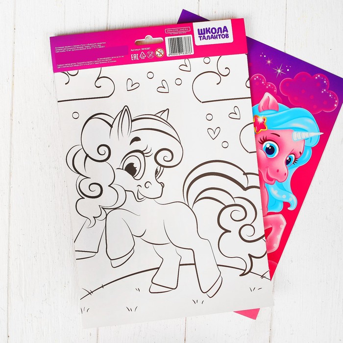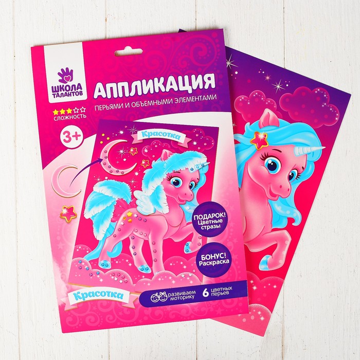 Аппликация перьями и стразами "Пони" с объемными элементами