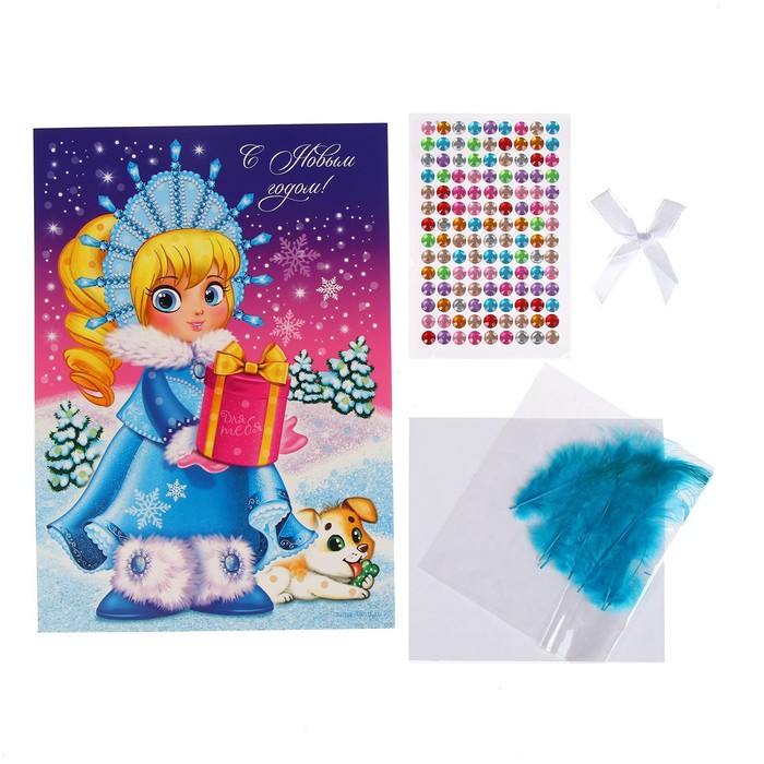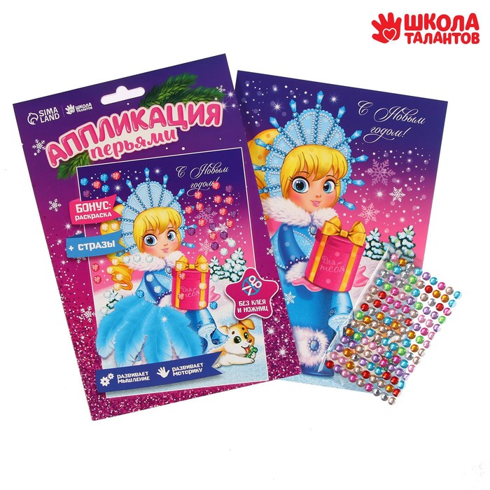 Аппликация перьями и стразами "Снегурочка" + бантик