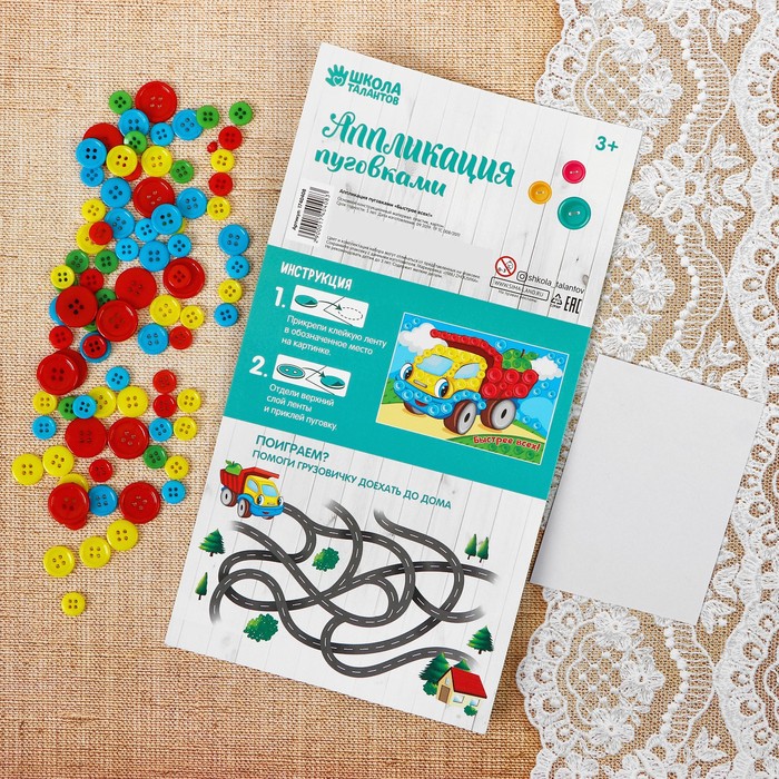Аппликация пуговками "Быстрее всех!" + клейкая лента