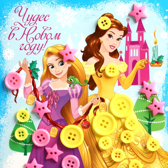 Аппликация пуговками "Чудес в Новом году!" Принцессы + клейкая лента