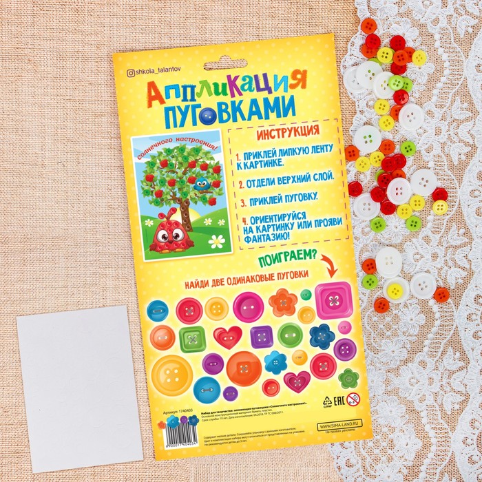 Аппликация пуговками "Солнечного настроения!" + клейкая лента