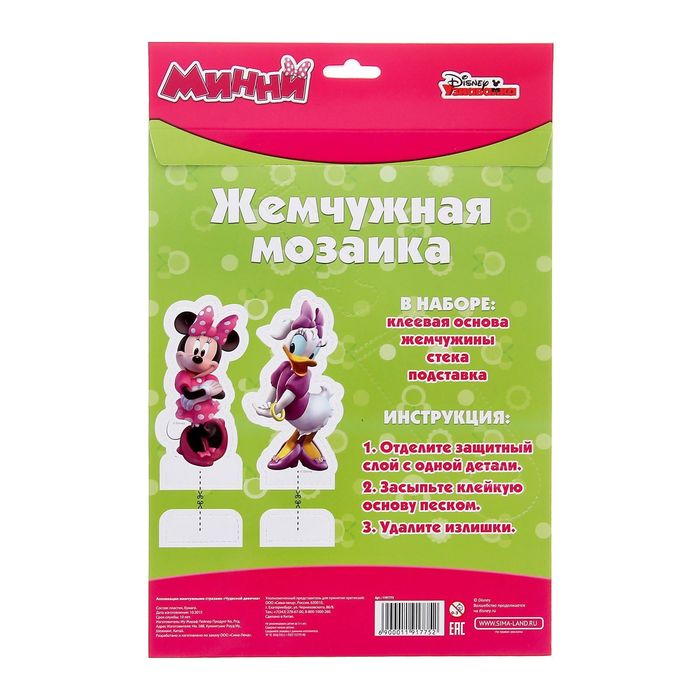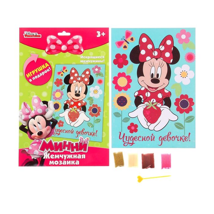 Аппликация жемчужными стразами "Чудесной девочке", Минни Маус, 5 пакетиков жемчужных страз, А4