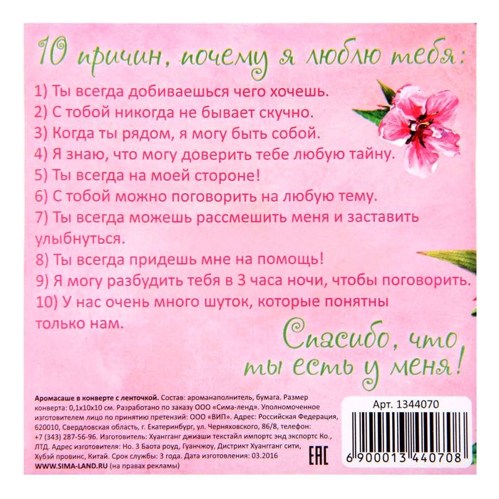 Порадуйте близкого человека неожиданным сюрпризом, подарите ему аромасаше в конвертике с пожеланиями. Его волшебный запах наполнит дом, а красивый конверт украсит помещение.