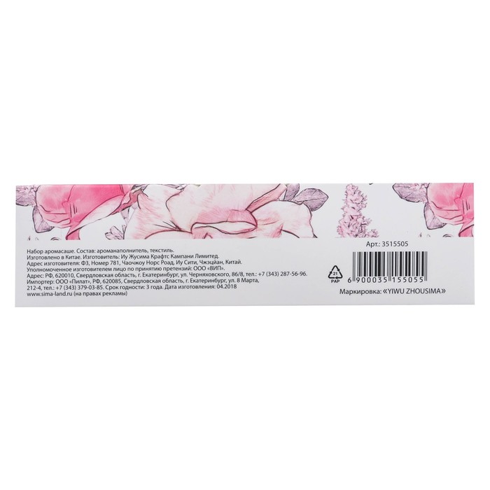 | Вид ароматизатора | В мешочке |