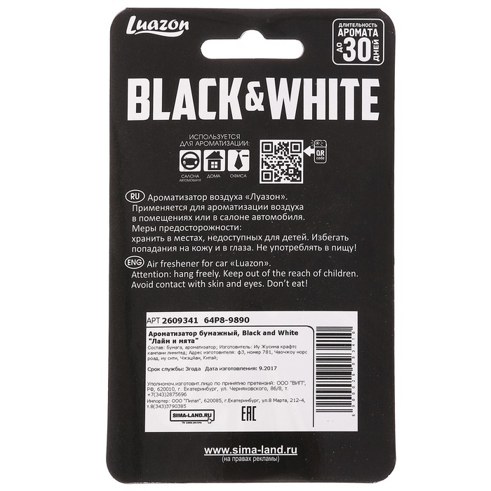 Не секрет, что машина давно уже перестала восприниматься как просто средство передвижения, и водители покупают всё лучшее для своих железных коней. Ароматизатор бумажный, Black and White "Лайм и мята" — идеальный выбор, если вы ставите целью и улучшение технических характеристик, и поддержание внешнего вида автомобиля.