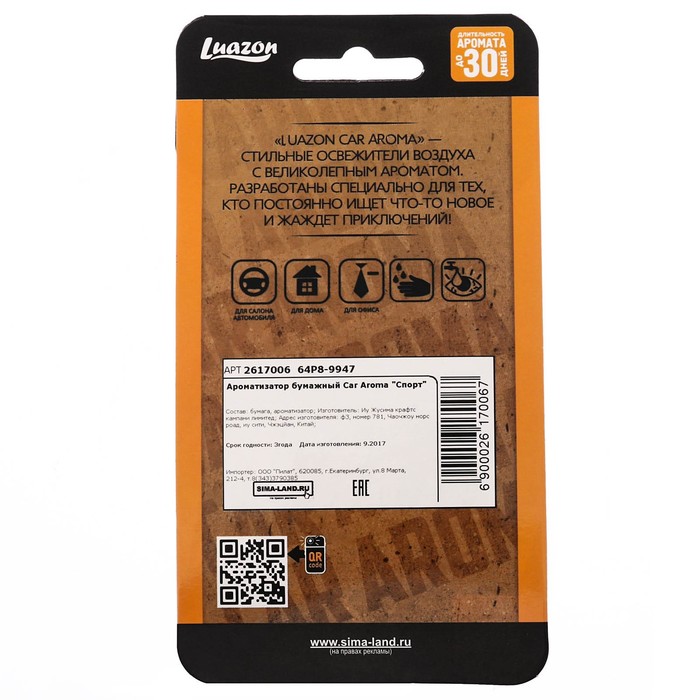 Ароматизатор бумажный Car Aroma "Спорт", цитрусы