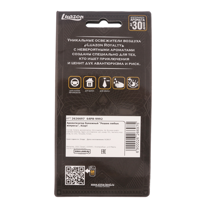 Не секрет, что машина давно уже перестала восприниматься как просто средство передвижения, и водители покупают всё лучшее для своих железных коней. Ароматизатор бумажный "Решаю любые вопросы", азарт, тропические фрукты — идеальный выбор, если вы ставите целью и улучшение технических характеристик, и поддержание внешнего вида автомобиля.