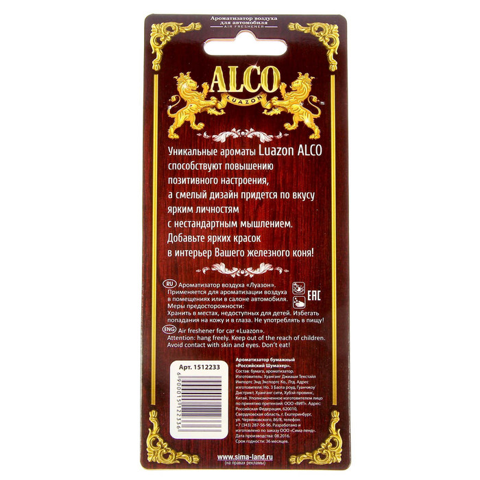 Ароматизатор бумажный "Российский Шумахер", яблочный пунш