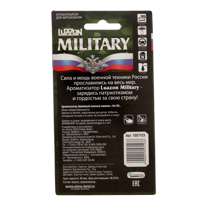Ароматизатор бумажный военные машины "Ка-50", ваниль