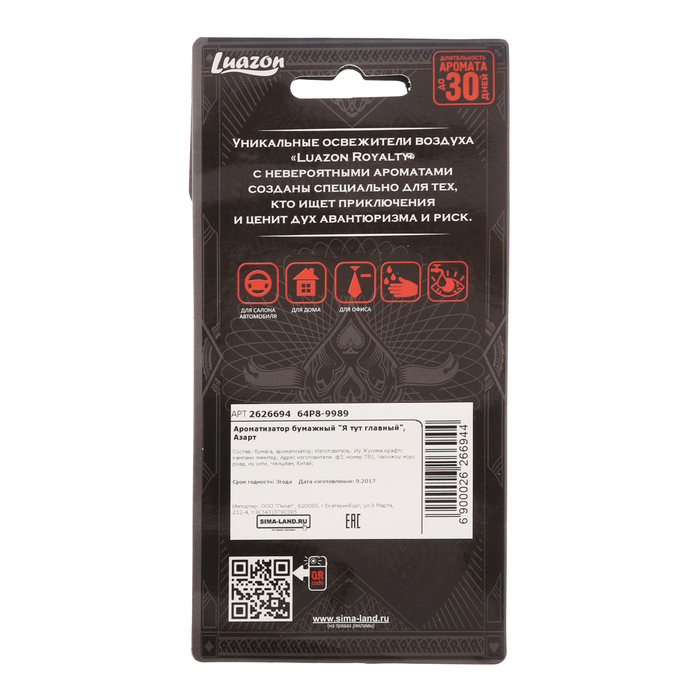 Ароматизатор бумажный "Я тут главный", Азарт, парфюм