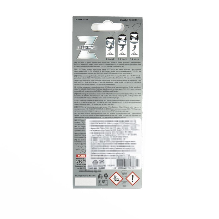 Ароматизатор FRESH WAY, подвесной, бумажный,Чёрный лёд, серия FRESH WAY,Болгария,VICTORY2000 33909