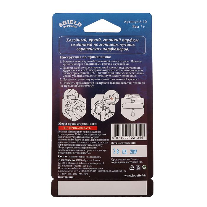 Ароматизатор мембранный подвесной "Shield perfume", чёрная вода