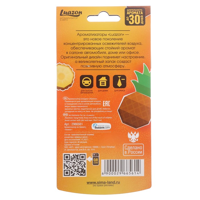 Не секрет, что машина давно уже перестала восприниматься как просто средство передвижения, и водители покупают всё лучшее для своих железных коней. Ароматизатор на зеркало из аромапластика "Ананас", серия фрукты — идеальный выбор, если вы ставите целью и улучшение технических характеристик, и поддержание внешнего вида автомобиля.