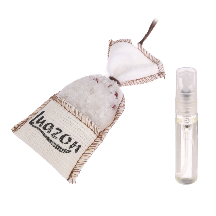 Мешочек наполнит салон автомобиля, шкаф или сумку приятным запахом. Эссенция в бутыльке с распылителем прилагается отдельно. Силу и интенсивность аромата можно контролировать самостоятельно, нанося больше или меньше жидкости на натуральную основу — морскую соль.