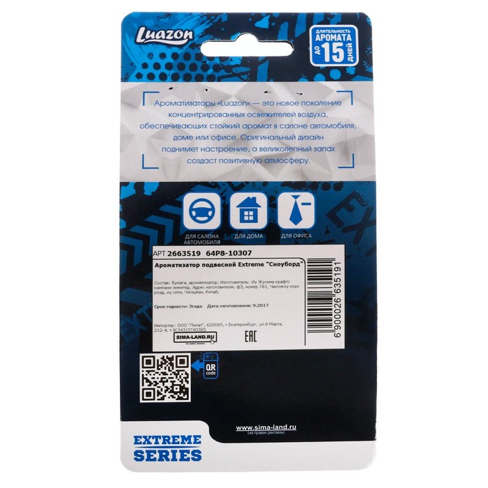 Ароматизатор подвесной Extreme "Сноуборд", свежесть