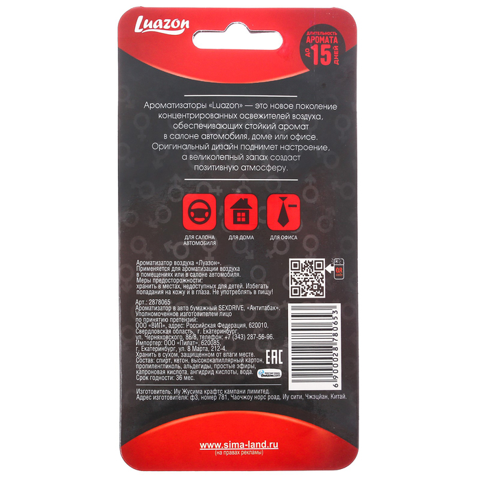 Ароматизатор в авто бумажный SEXDRIVE "Антитабак"