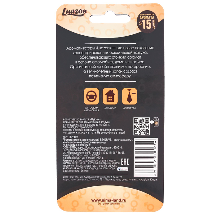 Ароматизатор в авто бумажный SEXDRIVE "Восточная ваниль"