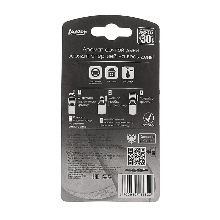 Подвесной ароматизатор Luazon — отличное дополнение в салон автомобиля. Оригинальный дизайн удивит попутчиков, а приятный запах будет долго радовать владельца.
