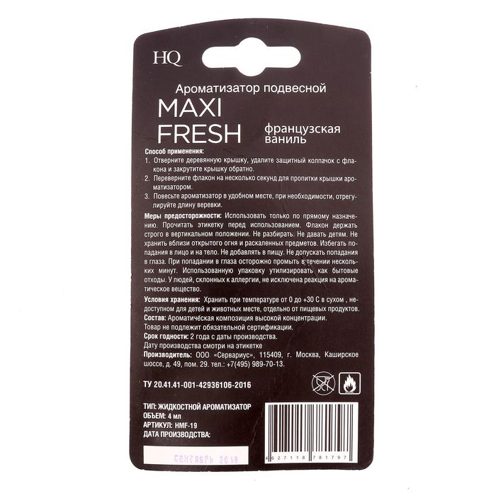 Ароматизатор в бутылочке MAXI FRESH, французская ваниль, 4 мл